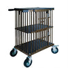 The “Best in Show” Mini Double Decker Trolley features 2 berths, 1 up 1 down in durable colors and finishes that include: Veins, Hammered’s, Candy Colors, Shimmers and Sparkles. Each color is powder coated and baked on in a 4 step process. Lids, floors and dividers are made of a recycled strong and durable high density polyethylene. The trolley folds up to only 6” for easy transport. The trolleys are fitted with 6” foam filled flat free wheels 2 of which are lockable. Each trolley is weather resistant and features stainless steel door latches and hinges, comes standard with feed bowl bars and rubber grips on the handles. This model does not have bars to hold a fan.