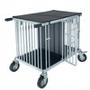 The “Best in Show” 2-Berth Extra Long Extra Wide Trolley is a Special Order. Placing an order for this size trolley is with the understanding that this “extra length and extra width” does not carry any guarantee or warranty regarding weight performance for your pet. This XLong XWide 2-Berth is 4” longer and 4” deeper and exceeds the optimum design size for aluminum. All BIS trolleys are available in durable colors and finishes to include: Veins, Hammered’s, Candy Colors, Shimmers and Sparkles. Each color is powder coated and baked on in a 4 step process. Lids, floors and dividers are made of a recycled strong and durable high density polyethylene. The trolley folds up to only 6” for easy transport. The trolleys are fitted with 6” foam filled flat free wheels 2 of which are lockable. Each trolley is weather resistant and features stainless steel door latches and hinges, comes standard with feed bowl bars, fan bars and rubber grips on the handles.